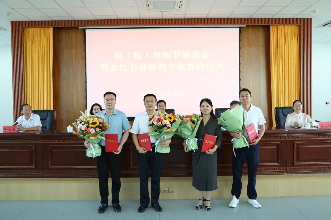 上午8:30,校(院)召开教师节座谈会暨柔性引进特聘专家签约仪式。校(院)委会成员、各部门负责人、全体教师及管理服务人员代表等90余人参会。